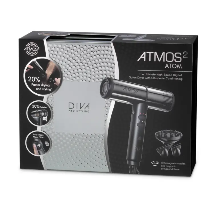 Diva Pro Styling predstavlja Atmos Atom fen koji teži samo četvrtinu težine prosječnog AC Motor fena, bez da smanjuje snagu i jačinu sušenja!