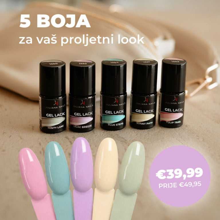Sadrži: Gel Polish Minty Lane 6ml, Gel Polish Sunny Path 6ml, Gel Polish Lilac Breeze 6ml, Gel Polish Tulip Trail 6ml, Gel Polish Blue Steps 6ml.