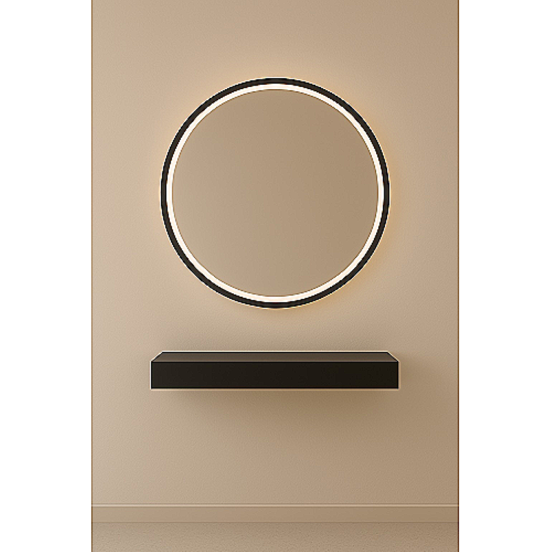 Frizersko ogledalo Oviedo s crnim rubom predstavlja balans između funkcionalnosti i modernog dizajna. Njegov okrugli oblik unosi mekoću u prostor, dok crni rub pruža snažan vizualni kontrast i dodatnu dubinu interijeru.