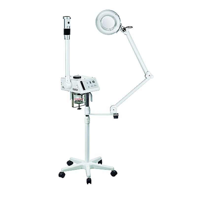 Bijeli metalni okvir za veliku stabilnost i čvrstoću i mogućnost pričvršćenja lupe. Opremljen je s rotirajućim glavom i spremnikom aromatskog ulja. Stabilno postolje na kotačima za lako kretanje podesivo po visini. Kapacitet 0,7 l.